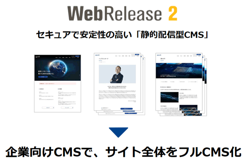 WebRelease2は、運用者がアクセスするCMS環境と、一般ユーザーがアクセスする公開環境を分離するCMSです。