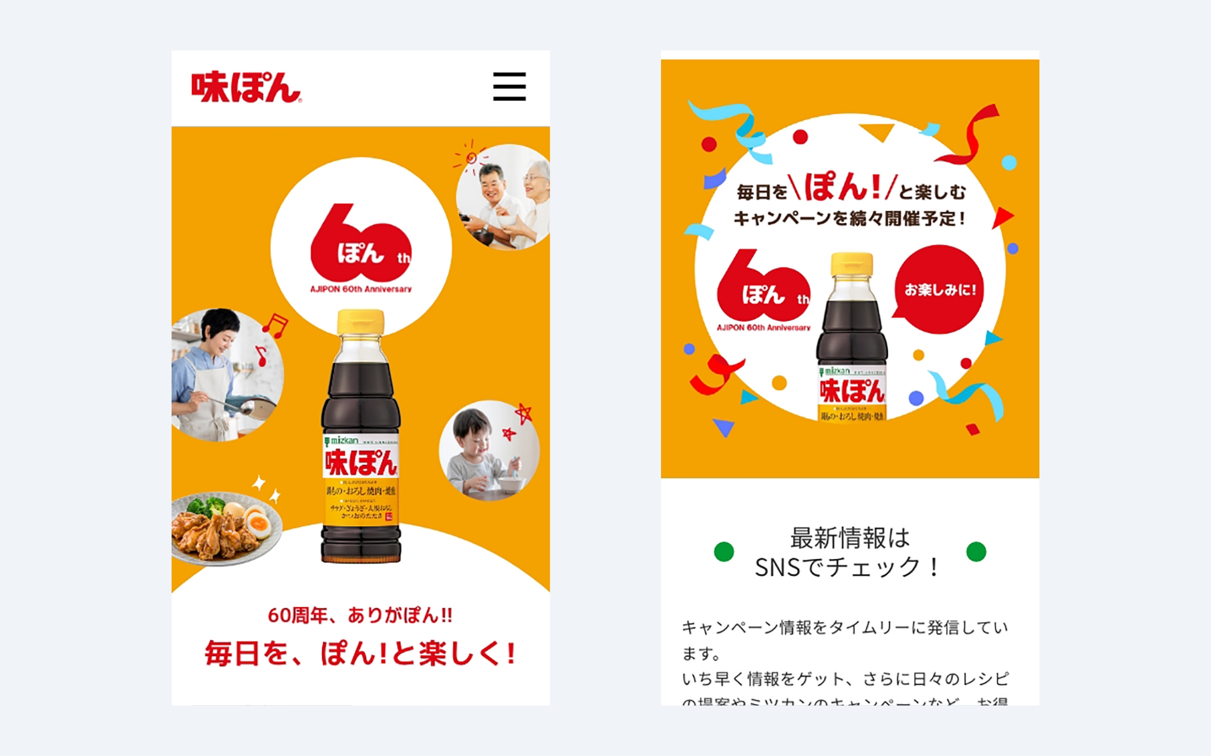 味ぽん60周年を記念したキャンペーンページを制作しました。